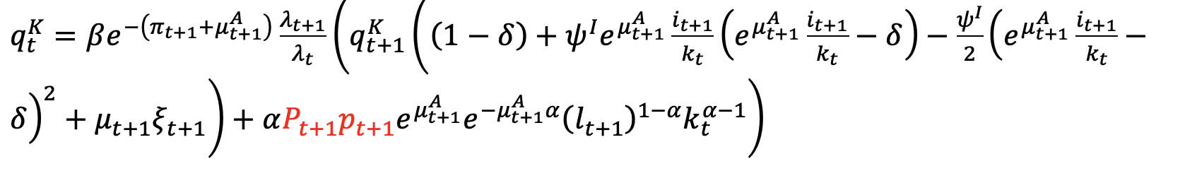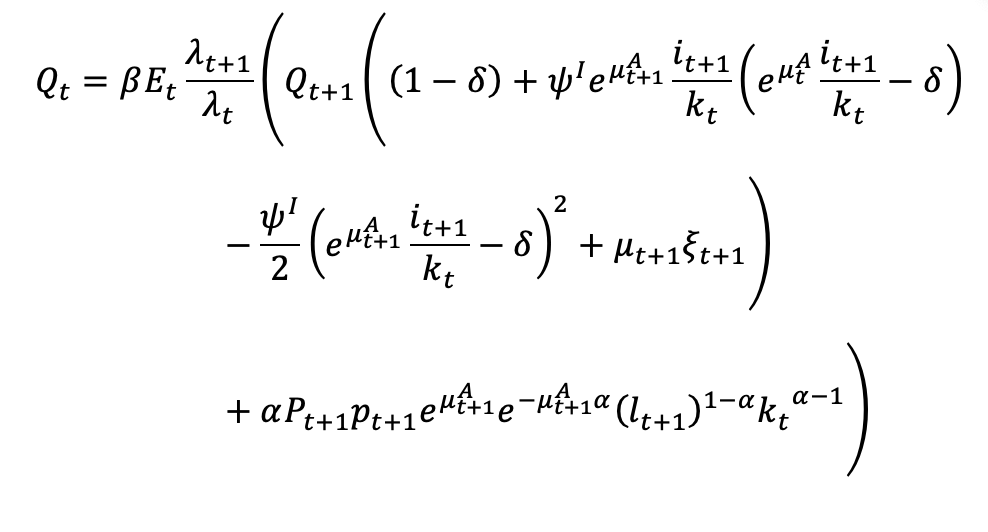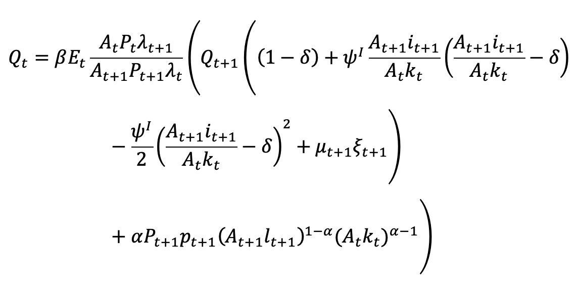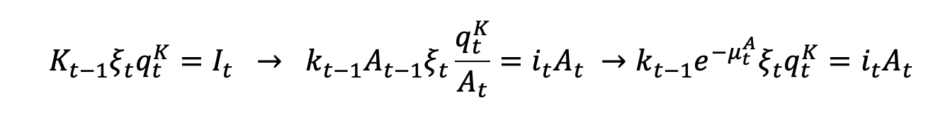 A_{t-1}k_{t-1},\xi_t,\frac{q_t^{K}}{A_t P_t} = A_t,i_t,