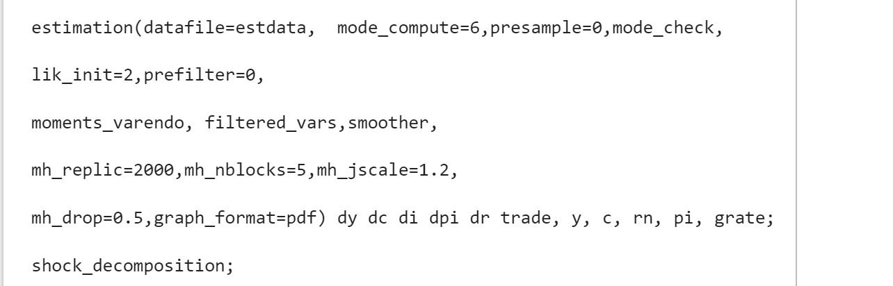 This is the estimation command and the Bayesian estimation results are stored in oo_. But I am not sure which the data I need.