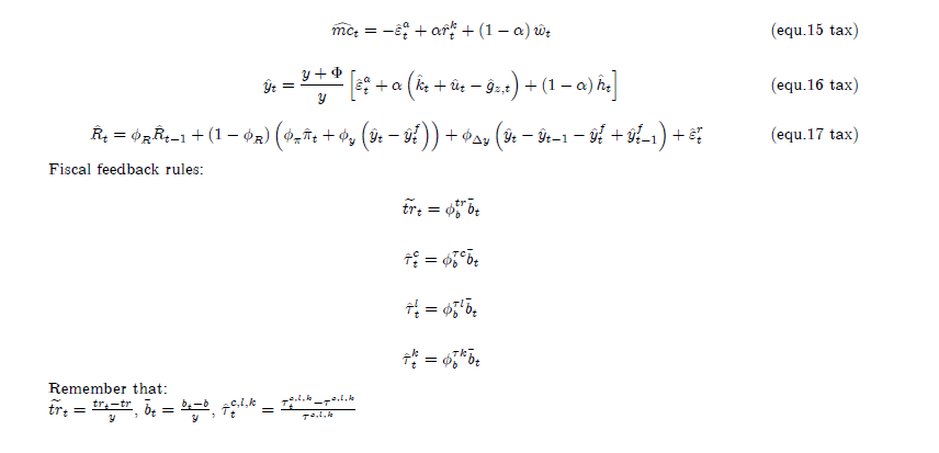 Thanks in advance, I also attach the main equations, although in my case I only added a consumption tax (eq. 1 and 7)