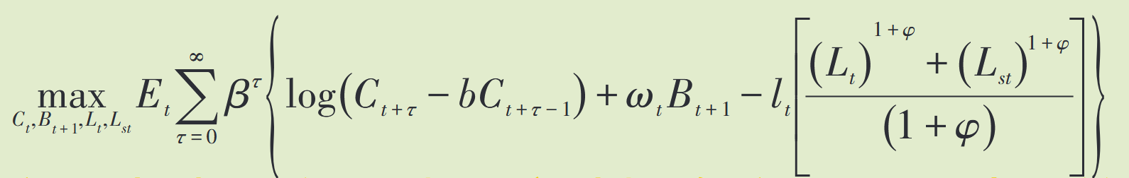 I’d like to add a labor supply shock to my model. This shock variable is placed in the utility function, as shown in the figure. Does an increase in the shock variable l_t represent a positive or negative labor supply shock?