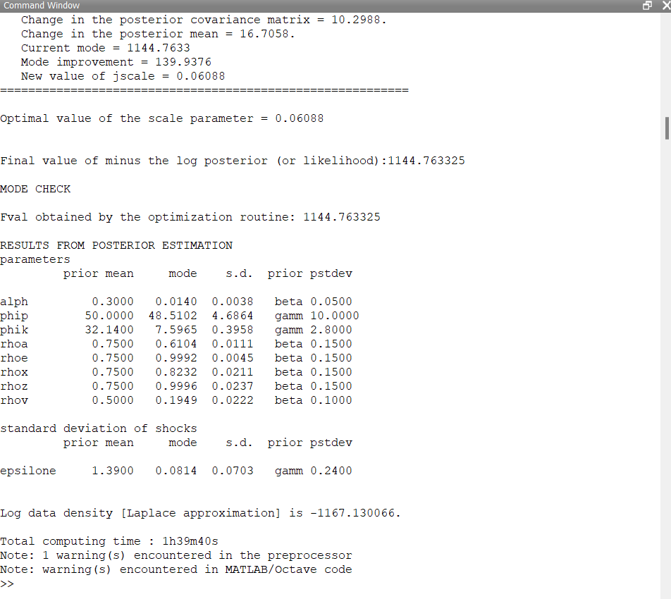 Okay, I already have mh_replic=250000. Could you please confirm if my RW-MH runs correctly? I still obtain some error messages, although the process seems to run smoothy regardless. Thank you!