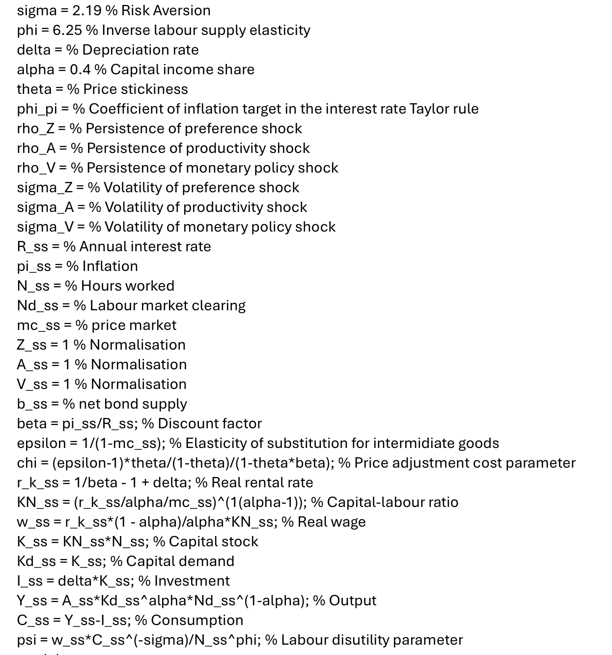 I am trying to make a new keynesian model and calibrate these parameters towards the uk between the years of 1974 and 2016, but I am struggling to find these values. Where can I find the data for this? I have also heard that we can use empirically standard values, but I am not sure as to where I should look for them.
